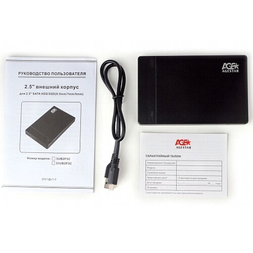 Корпус для SSD-HDD AgeStar 3UB2P3C (Black) 2.5 SATA контейнер, пластик, черный, usb 3.0 информация: