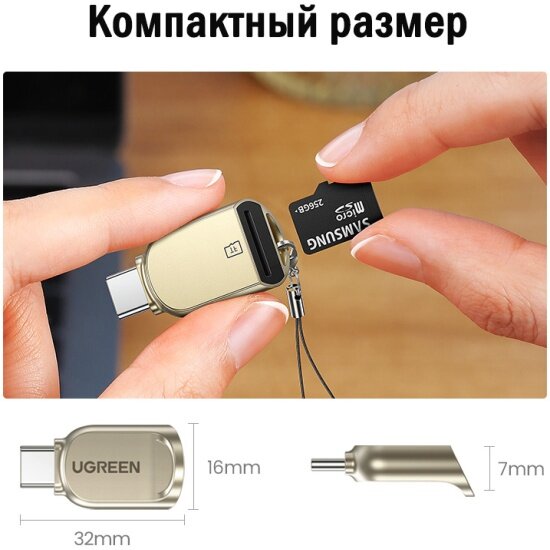 Кардридер UGREEN CM331 (80124) USB-C to TF Card Reader. Цвет: светло-золотой 1 999 ₽