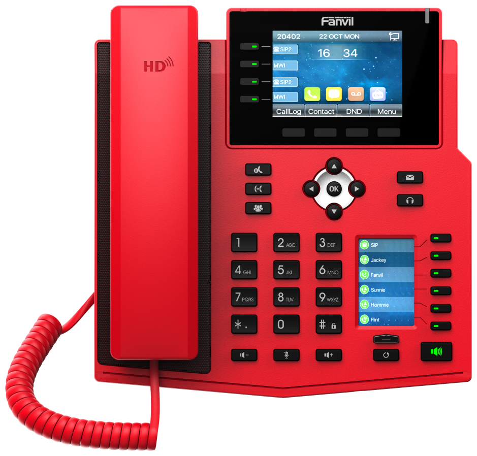 Fanvil X5U-R красный - IP телефон с бп, POE,16 SIP линий, цветной дисплей 3,5", встроенный Bluetooth 10 922 ₽