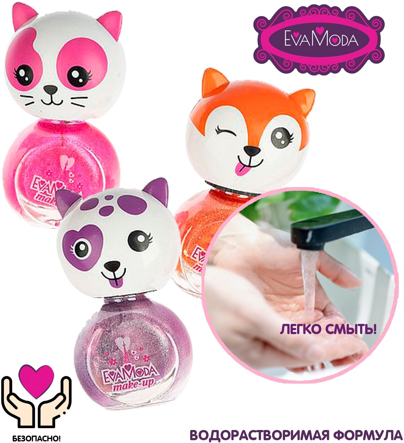 Набор детской декорат. косметики Bondibon Eva Moda 4 см, лаки для ногтей 3 оттенка (14