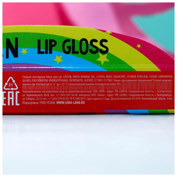 Глиттерный стойкий блеск для губ "Unicorn Magic" 4833185 информация: