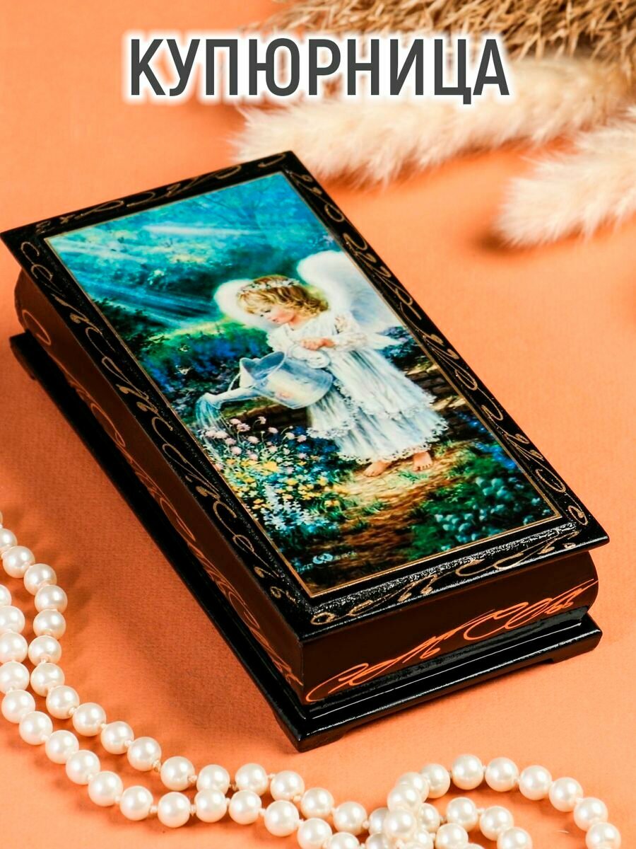 --- Шкатулка - купюрница "Ангел с лейкой", 8,5х17 см, лаковая миниатюра