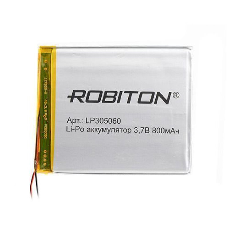 Аккумулятор литий-ионный полимер ROBITON LP305060, Li-Pol, 3.7 В, 800 мАч, призма со схемой защиты
