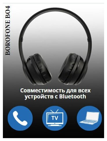 Наушники полноразмерные BOROFONE BO4, Charming rhyme, bluetooth, microSD, AUX, черный (6931474709882)