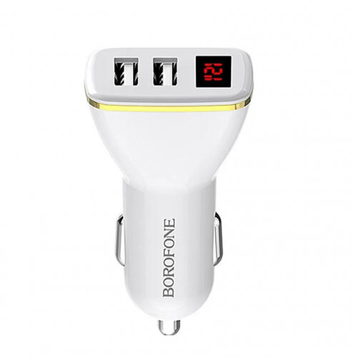 Автомобильное зарядное устройство BOROFONE BZ11 Speed map с цифровым дисплеем, двумя USB портами, белый