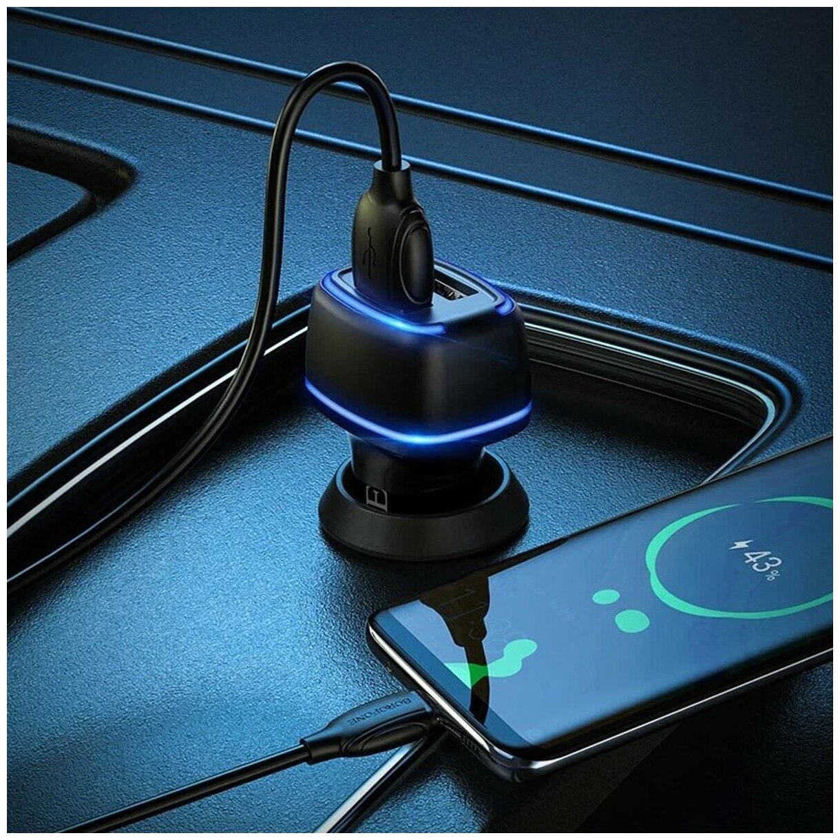 Автомобильное зарядное устройство с подсветкой, двумя портами USB, кабелем micro-USB BOROFONE BZ14. информация: