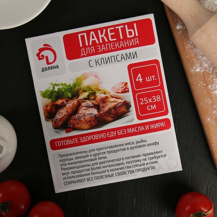 Пакеты для запекания Доляна 25 см х 38 см 4 шт, с клипсами информация: