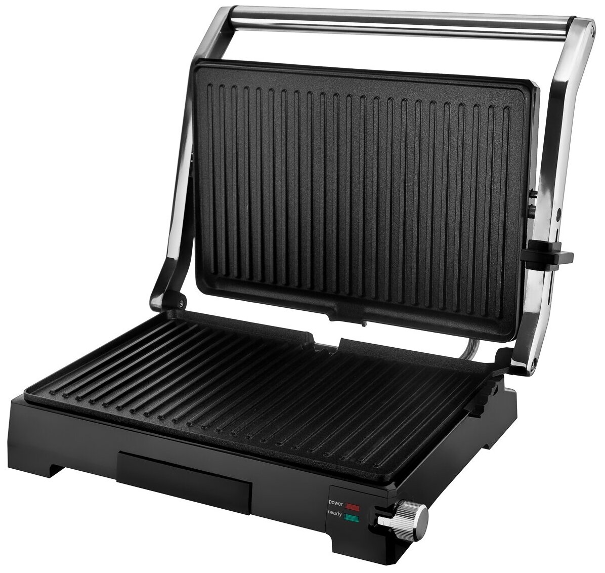 | Дополнительная информация | пластинами размером 34×23,5 см нагреваются до 230 °С, открытие крышки 105-180°, ручка регулятора термостата от 1 до 5, индикатор готовности и питания |