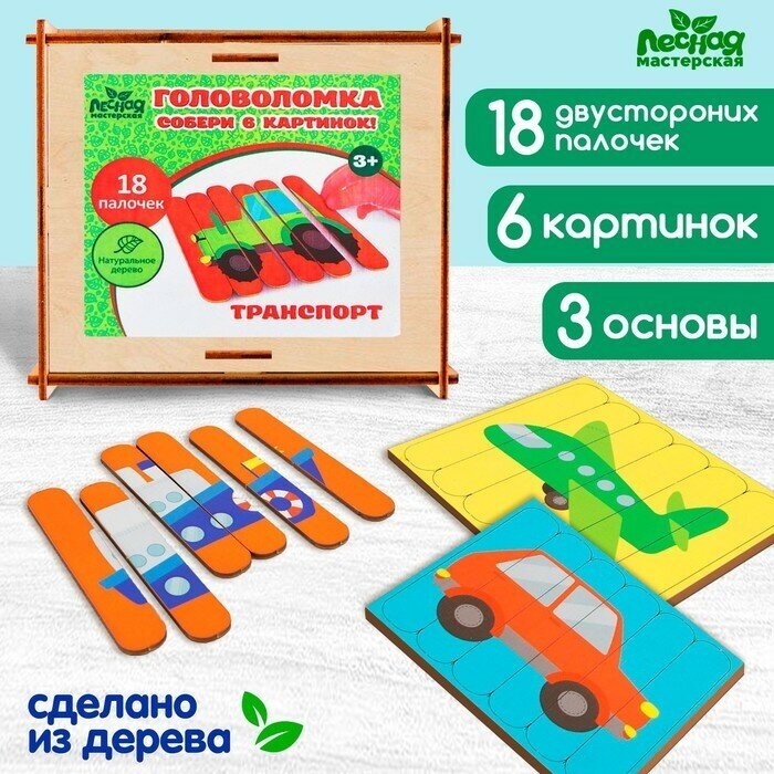 Отзывы на Головоломка. Собери 6 картинок "Транспорт", двусторонние палочки (1 шт.)