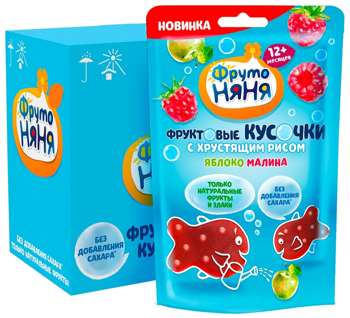 Отзывы на Фруктовые кусочки из яблок и малины, с хрустящим рисом ФрутоНяня, 12 г х 10 шт
