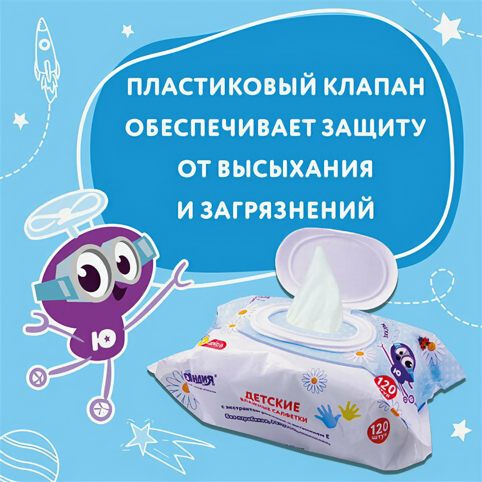 Салфетки влажные 120 шт., для детей юнландия, универсальные, очищающие, клапан крышка, 129893 (цена за 1 ед.товара) информация: