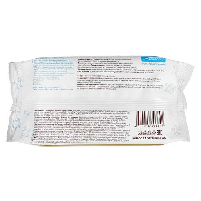 PAMPERINO Влажные салфетки Pamperino Newborn, детские, без отдушки, с клапаном, 56 шт информация: