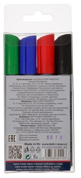 Koh-I-Noor Набор маркеров для флипчарта 4 цвета, 2,5 мм Koh-I-Noor 1405/4, круглые, пластиковая упаковка, европодвес информация:
