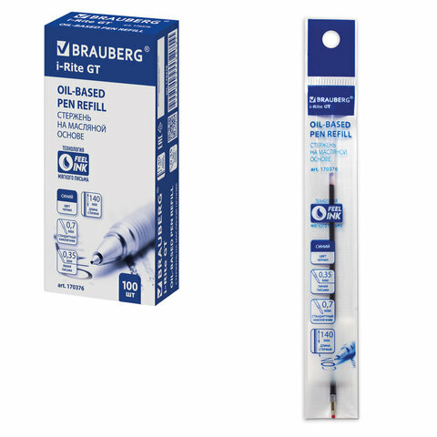 Отзывы на Стержень шариковый масляный BRAUBERG "i-Rite GT" 140 мм, синий, узел 0,7 мм, линия письма 0,35 мм, 170376 (цена за 1 ед.товара)