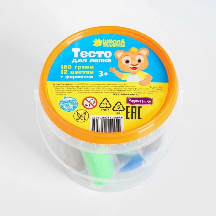 Тесто для лепки, 12 цветов 15 г с 1 формочкой в ведёрке информация: