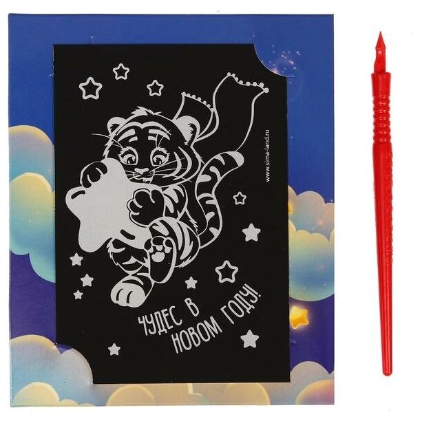 10 цен на Гравюра-открытка "Загадай желание" Тигренок с металлическим эффектом - радуга 6885395