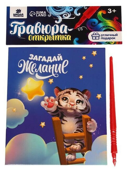 Отзывы на Гравюра-открытка "Загадай желание" Тигренок с металлическим эффектом - радуга 6885395