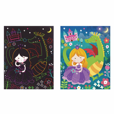 Гравюра магическая "Принцесса и дракоша", комплект 10 шт., А5, 2 основы в комплекте, с трафаретом, юнландия, 662690 информация: