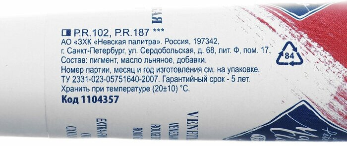 Краска масляная художественная в тубе №10 46мл ЗХК Мастер класс 1104357 Венецианская красн 4210352 информация: