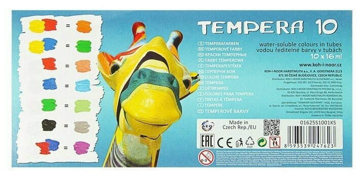 Краски темперные в тубах Koh-I-Noor, 10 цветов х 16 мл, без кисти информация:
