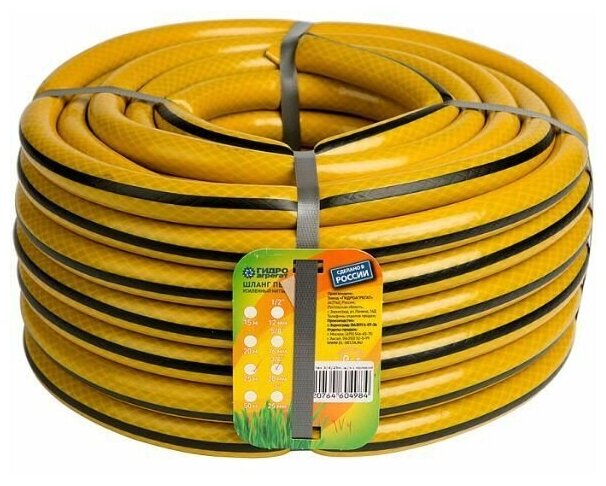 10 цен на Шланг для полива ПВХ армированный d1/2 25м стенка 1,2мм желт с черн полосой