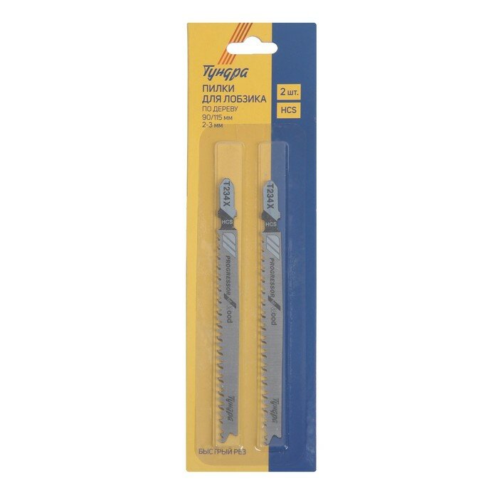 10 цен на Тундра Пилки для лобзиков тундра, по дереву, быстрый рез, HCS, 90/115 х 2-3 мм, X PROGRESSOR, 2 шт. 73474