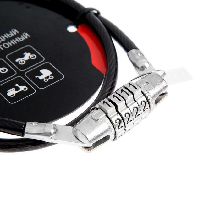 40052 Замок велосипедный тросовый с ключом, замок для коляски, для самоката BASARA B3-1000 MBP, 1000 мм