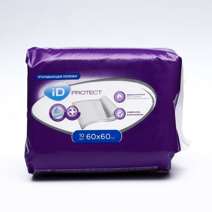 Пелёнки одноразовые впитывающие iD Protect, размер 60x60, 10 шт. информация: