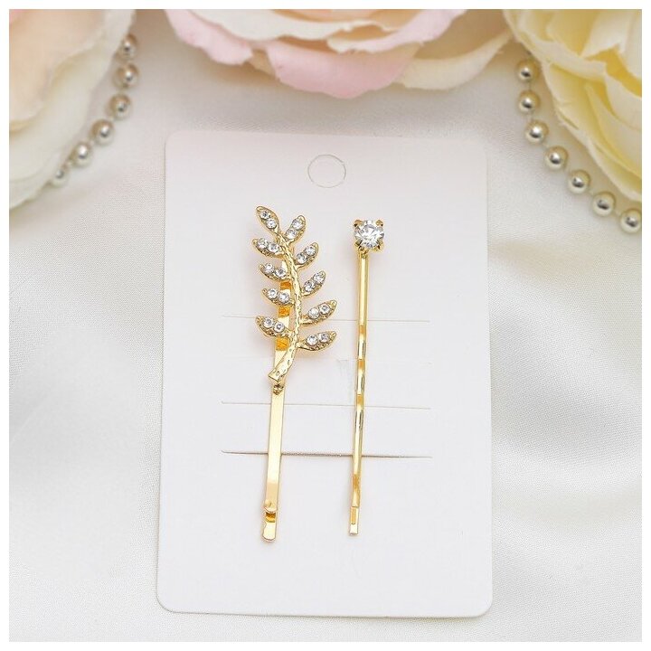 10 цен на Невидимка для волос "Либерти" (цена за пару) 6 см, лист и страза, золотоВ наборе6шт