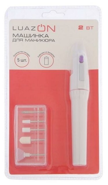 Luazon Аппарат для маникюра LuazON LMM-01-05, 2 Вт, 5 насадок, 2хAA (не в комплекте), белый. В наборе 1шт