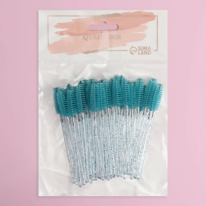 Queen Fair Набор щёточек для бровей и ресниц, 10 см, 50 шт, цвет бирюзовый/прозрачный