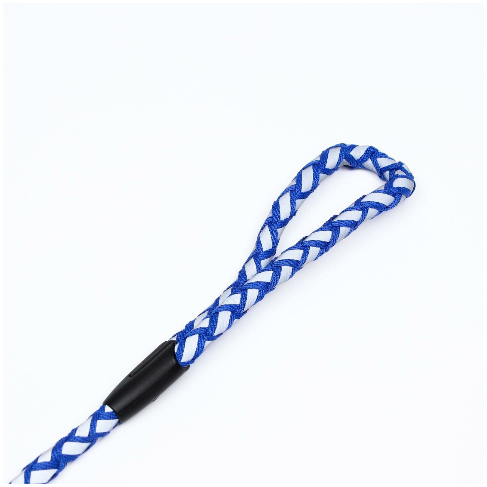 Шлейка для собак Пижон "Плетенка", 32-48 см, флуоресцентный, с поводком 115х1 см, синий