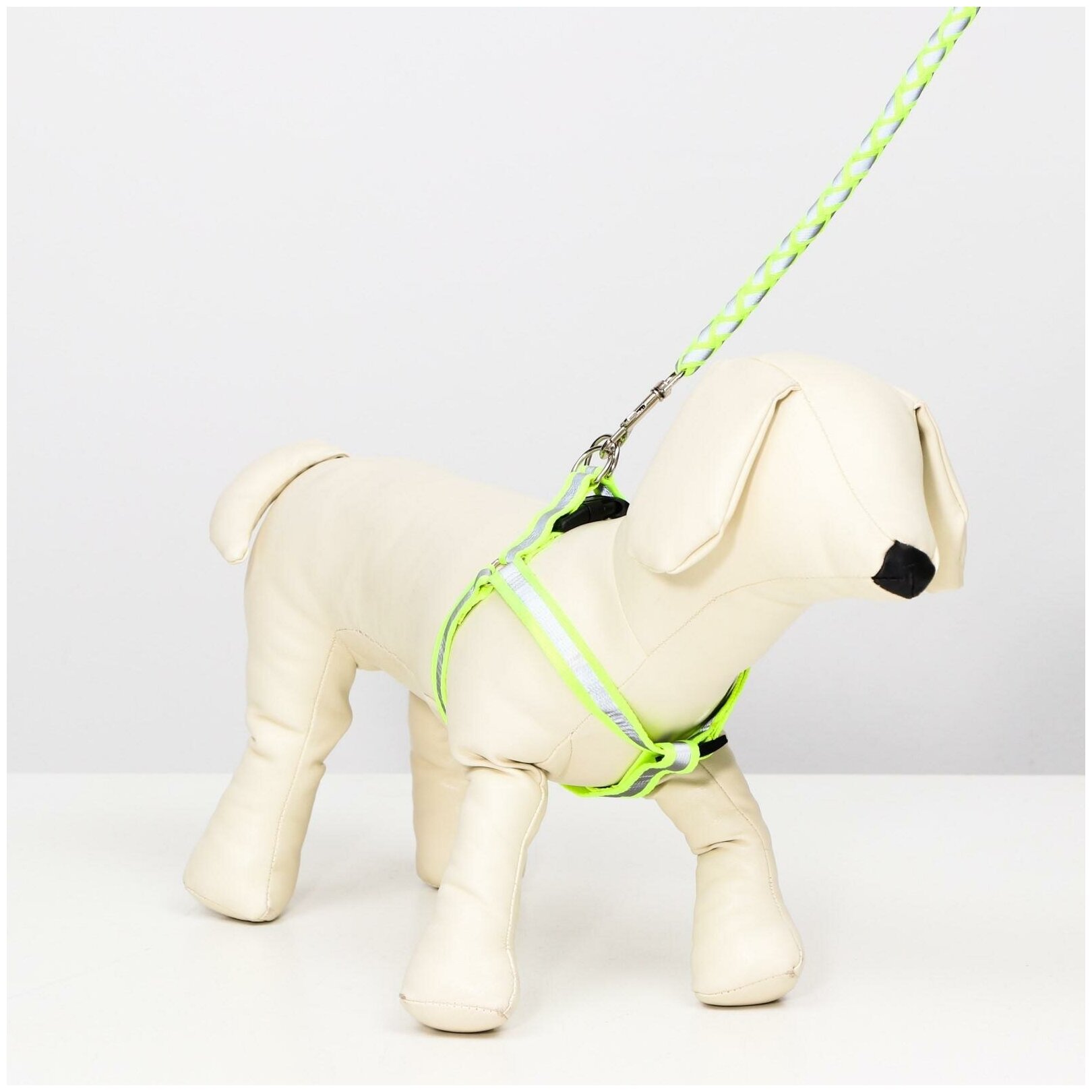 Шлейка для собак Пижон "Плетенка", 32-48 см, флуоресцентная, с поводком 115х1 см, зеленый