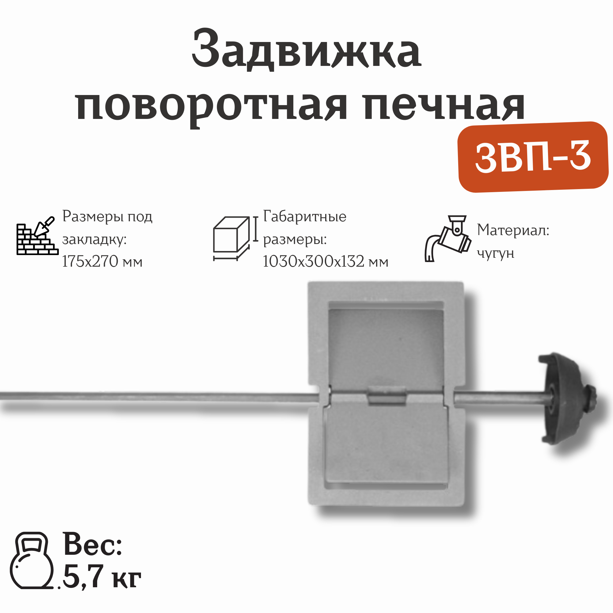 Задвижка поворотная печная ЗВП-3 (1034*300*132 мм) информация: