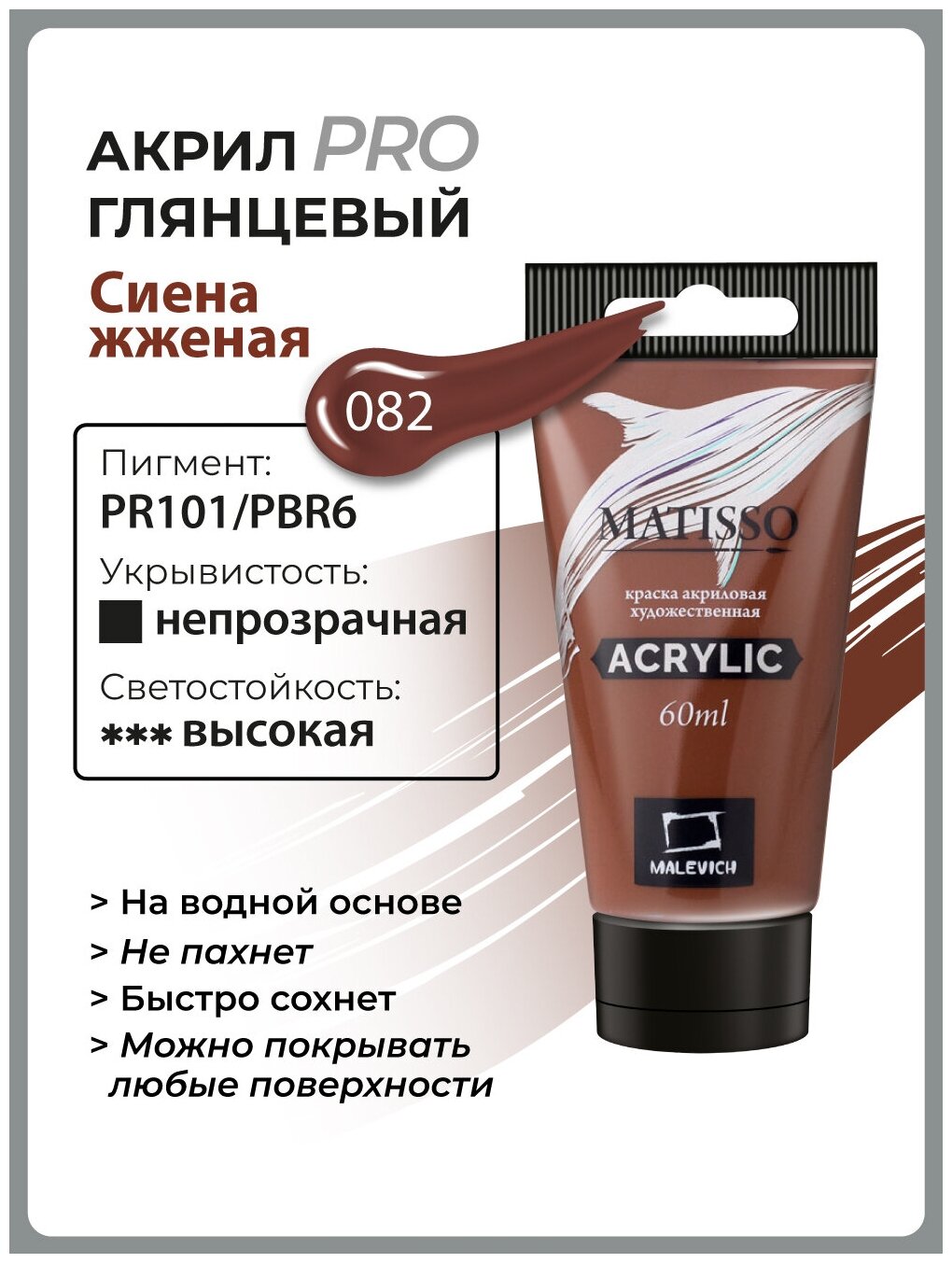 Акриловая краска Малевичъ Matisso, сиена жженая, 60 мл информация: