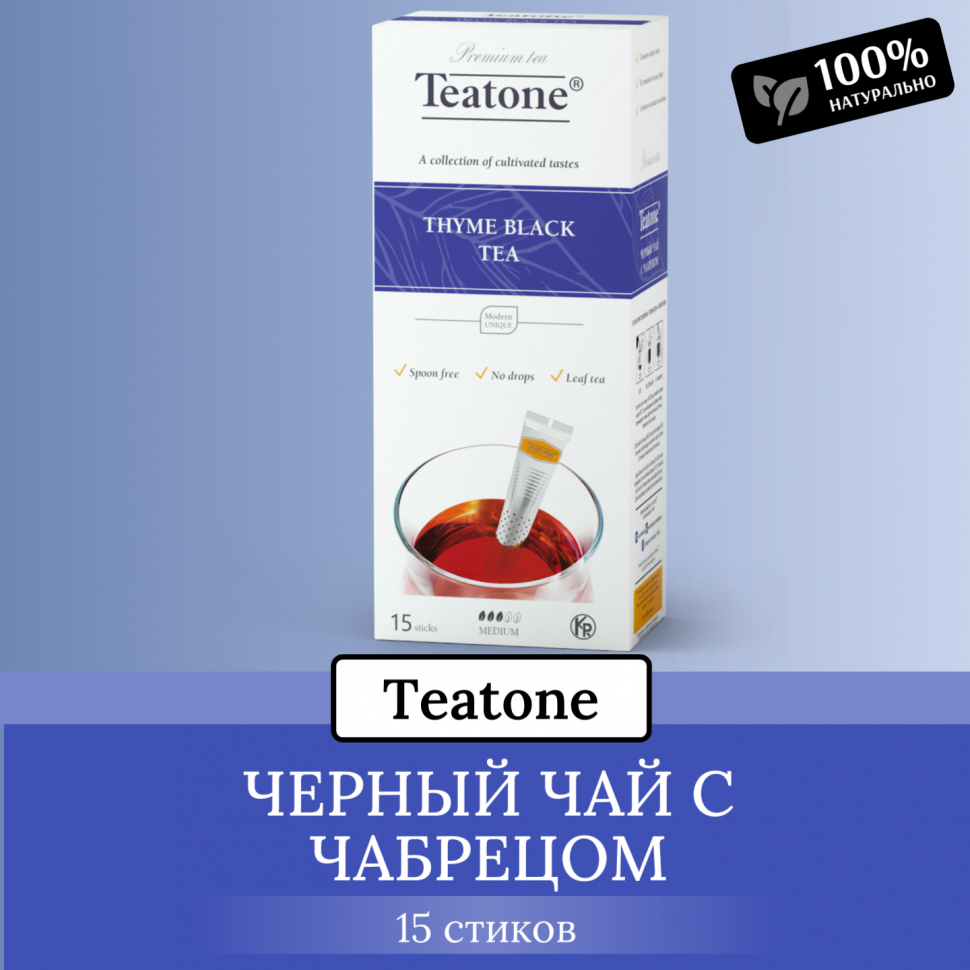 Чай TEATONE черный с чабрецом, 100 стиков по 1,8 г, 101