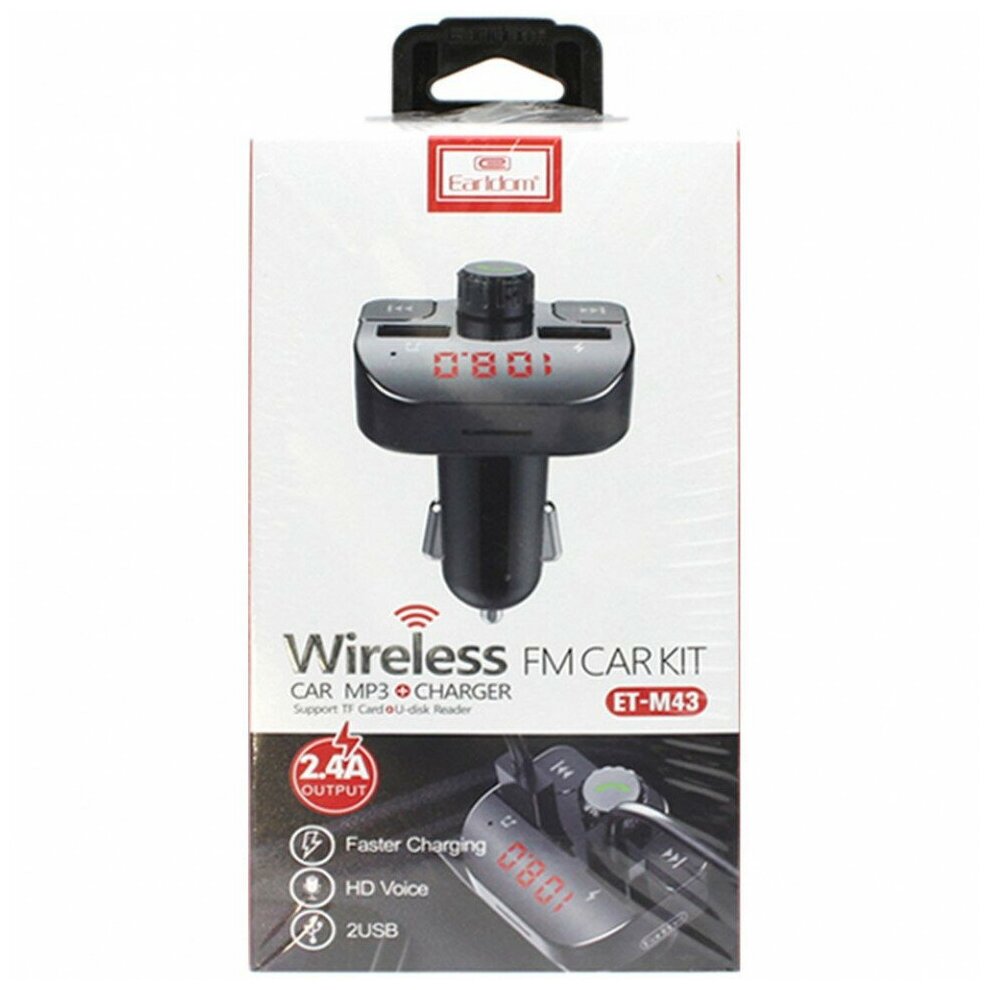 FM-трансмиттер (модулятор) Earldom ET-M43 с Bluetooth, 2xUSB, microSD - черный информация: