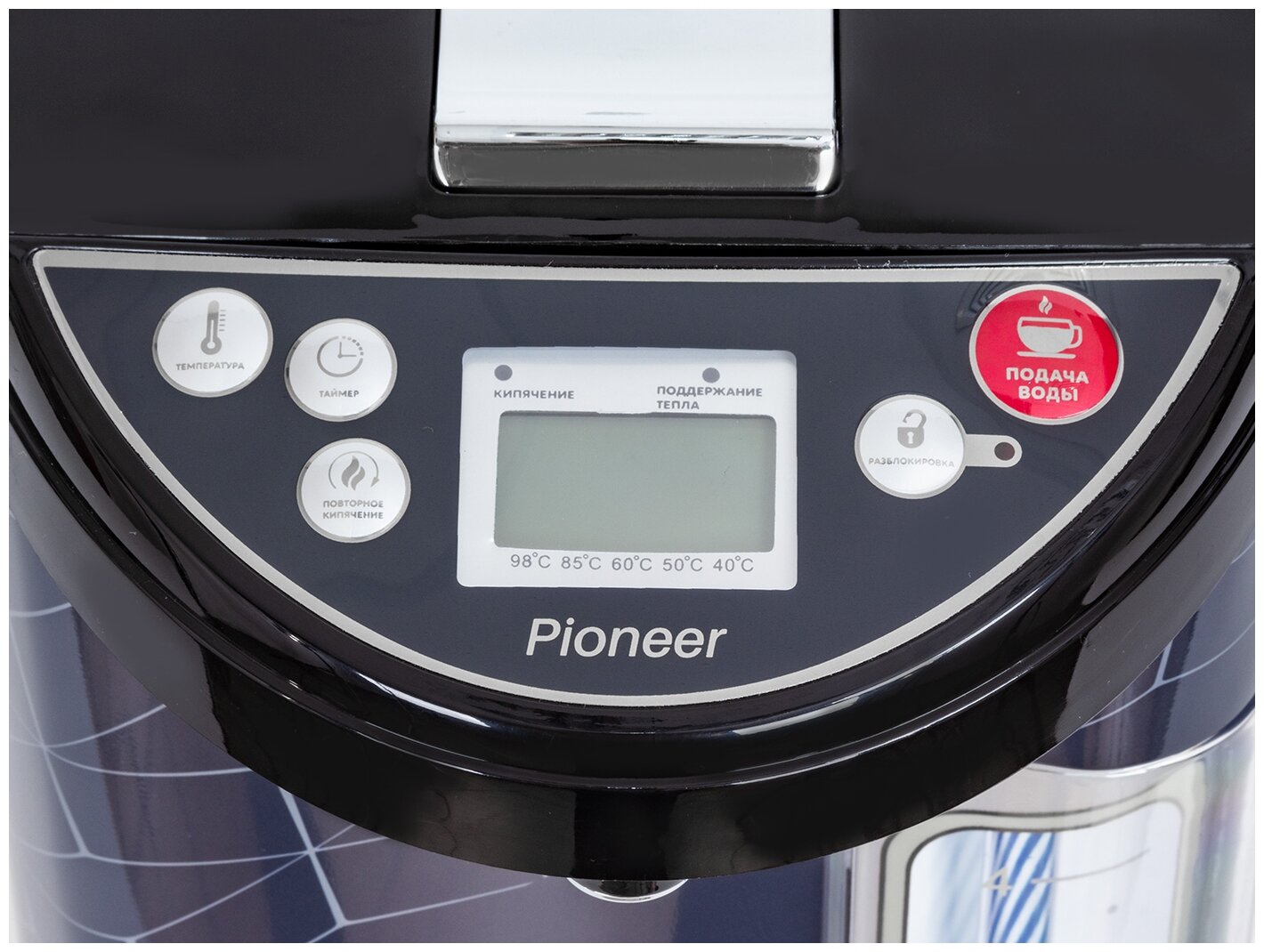 Термопот Pioneer 5 литров, с функцией выбора температуры нагрева 40, 50, 60, 85, 98 градусов, 3 способа подачи воды, сенсорное управление