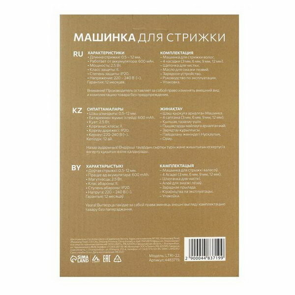 Машинка для стрижки Luazon LTRI-22 Машинка для стрижки 4483719