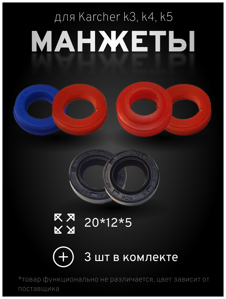 Отзывы на Ремкомплект 20*12*5 3шт, масленые манжеты, уплотнители для мойки высокого давления Кarcher k3,k4,k5