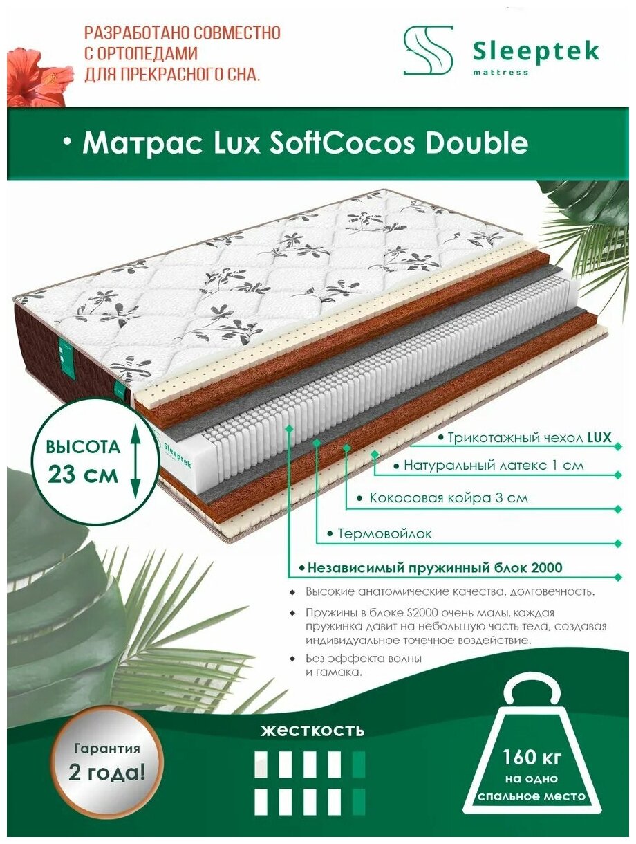 Матрас Sleeptek Lux SoftCocos Double 180х200 информация: