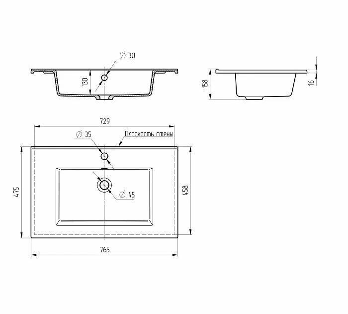 | Отверстие под перелив | есть |