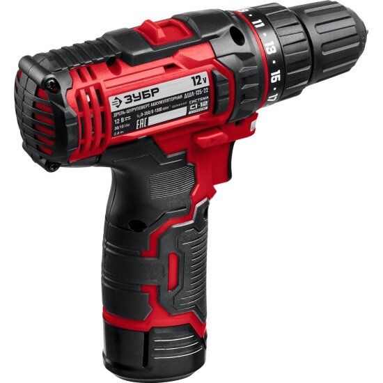 10 цен на Дрель-шуруповерт аккумуляторная ЗУБР ДШЛ-125-22, 2 АКБ (2Ач)