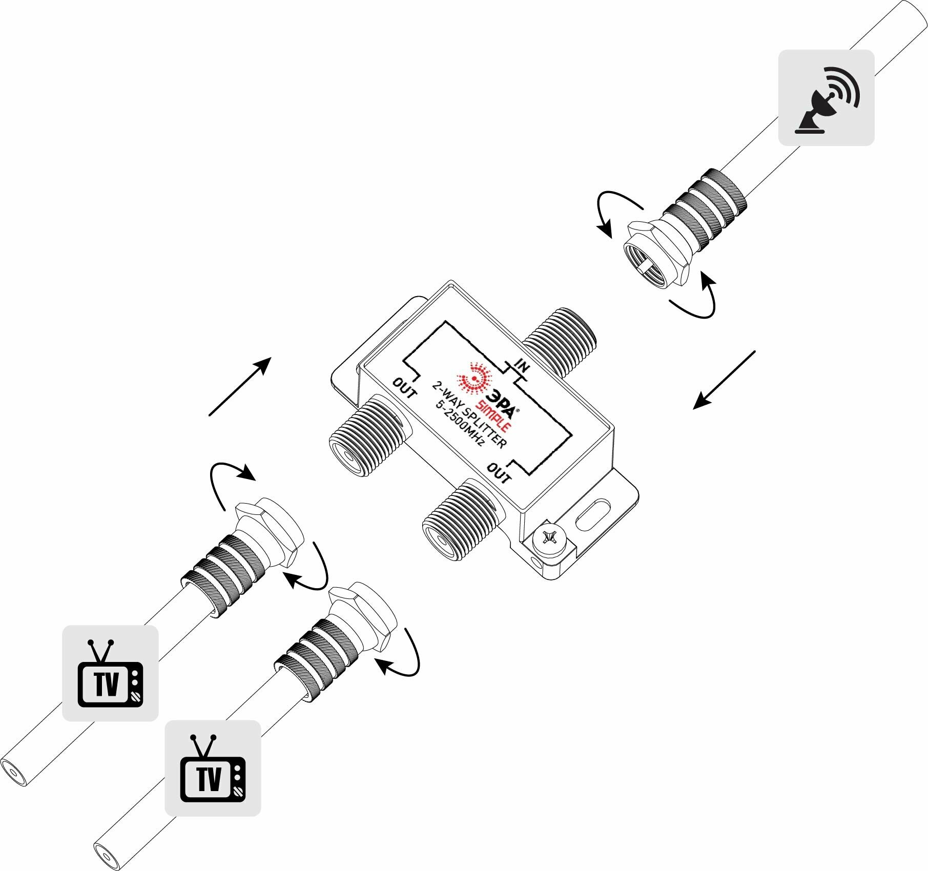 Делитель ТВ ЭРА Simple DS-F-SAT-01 2 ответвления под F разъём 5-2500 МГц