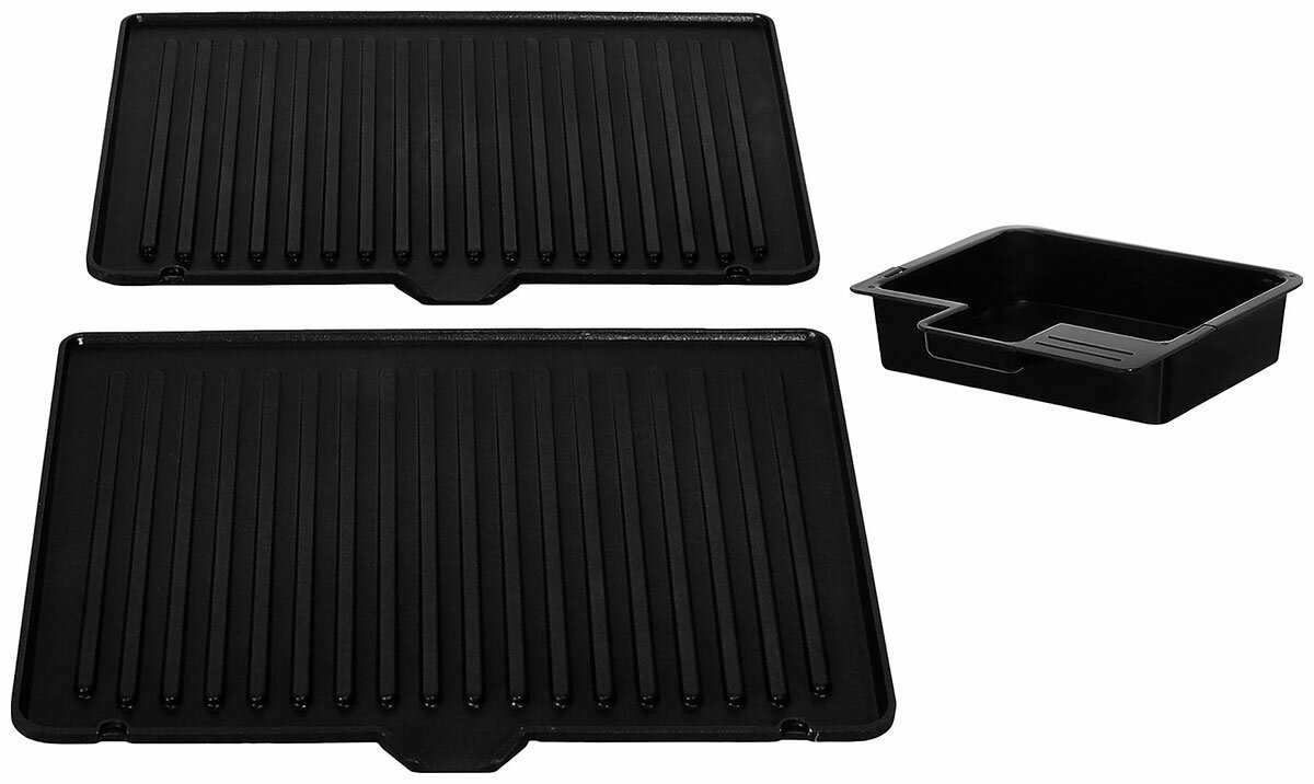 | Особенности | антипригарное покрытие / поддон для сбора жира / регулировка высоты верхней панели / съемные пластины |