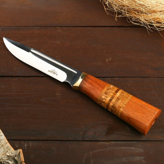 10 цен на Нож охотничий Мастер К, лезвие 12,5 см, в чехле, деревянная рукоять с пробковой вставкой