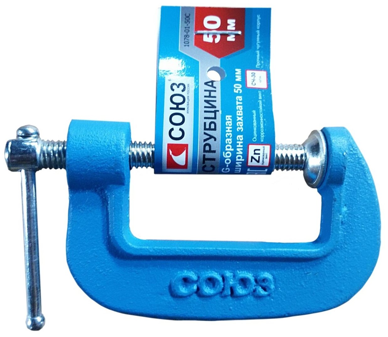 Струбцина G-образная, 50 мм / 2'', чугун, оцинкованный винт, СОЮЗ 1078-01-50С