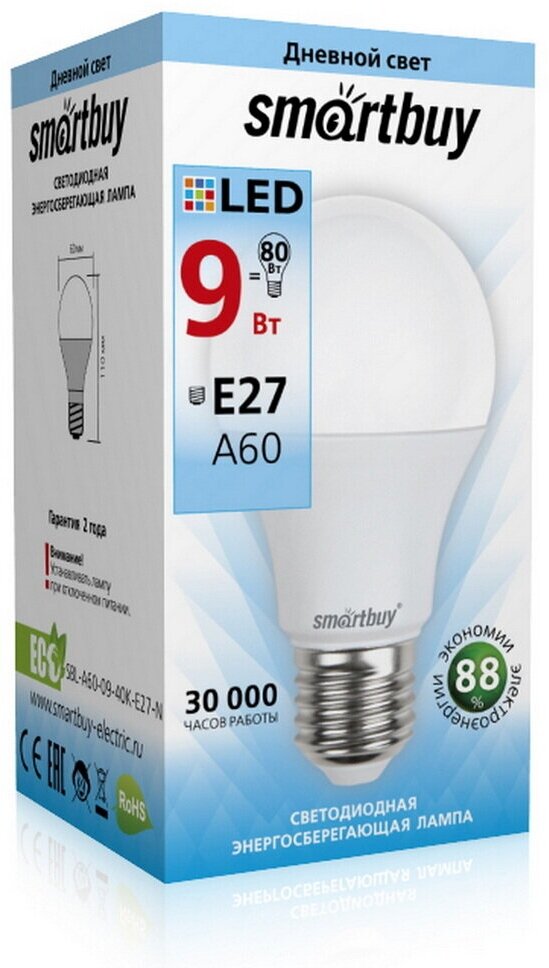 Лампа светодиодная Smartbuy SBL-A60-09-40K-E27-N информация: