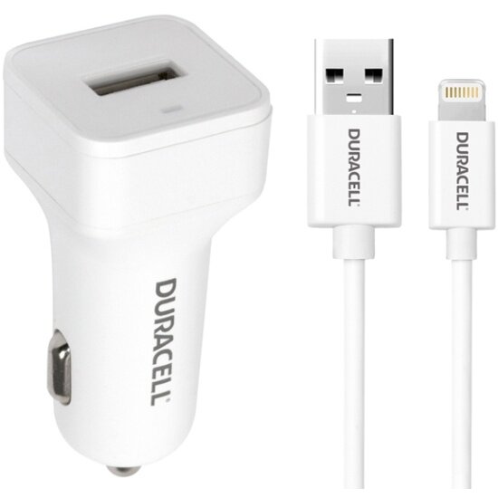 Автомобильное зарядное устройство Duracell DR5031W-RU, 1USB, 2.4А, Fast charger, белый + кабель lightning MFI 1м