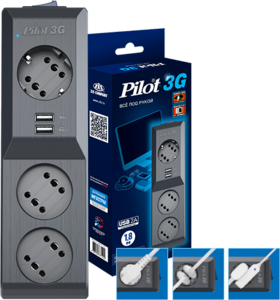 Сетевой фильтр Surge protector Pilot 3G 3xGP euro outlets, 10А/2.2кВа, 2xUSB, 1.8m, black информация: